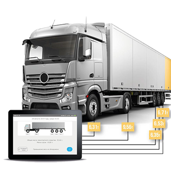 - Данные о массе груза выводятся на монитор водителя и передаются в режиме реального времени через GPS/ Глонасс в систему мониторинга транспорта;